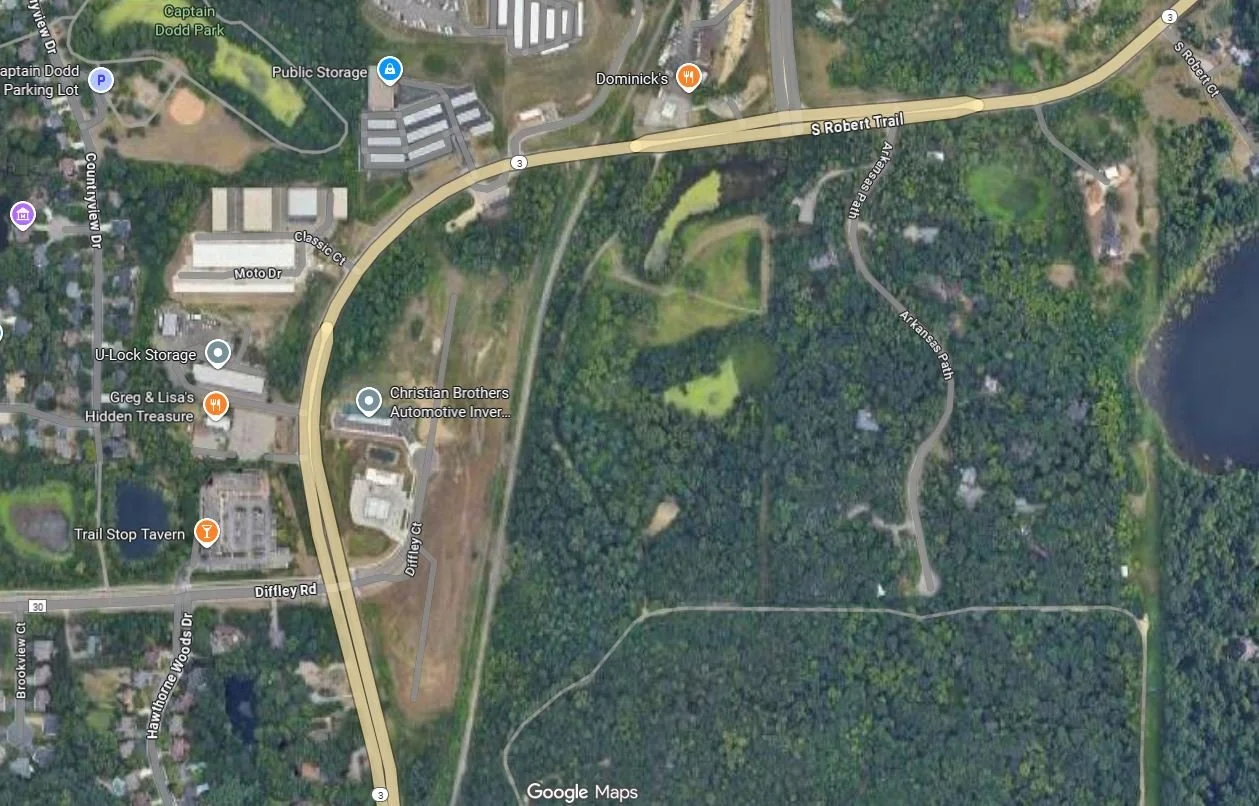 Provided by the Inver Grove Heights Fire Department, showing the narrow, long driveway emergency personnel had to navigate to fight this fire.