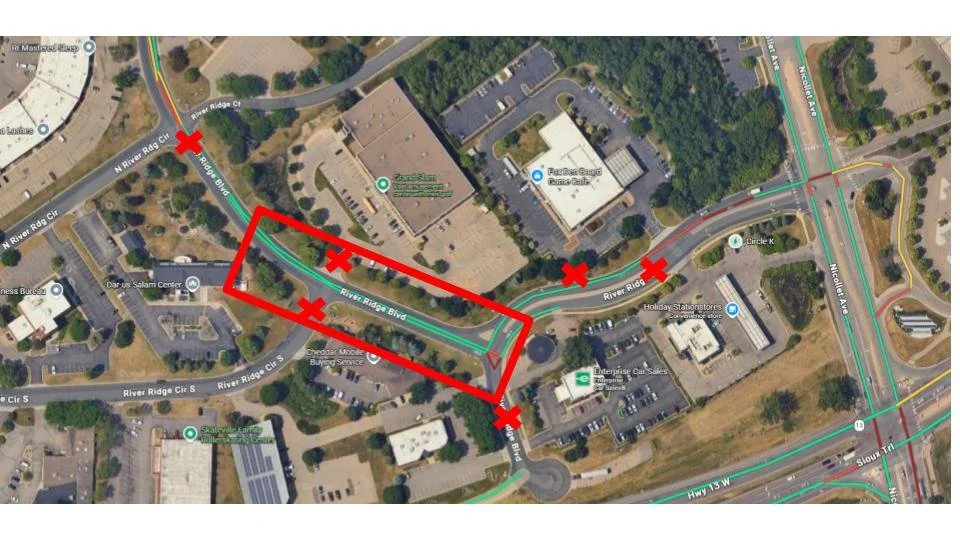 River Ridge Lane is closed between River Ridge Boulevard and the Holiday gas station.