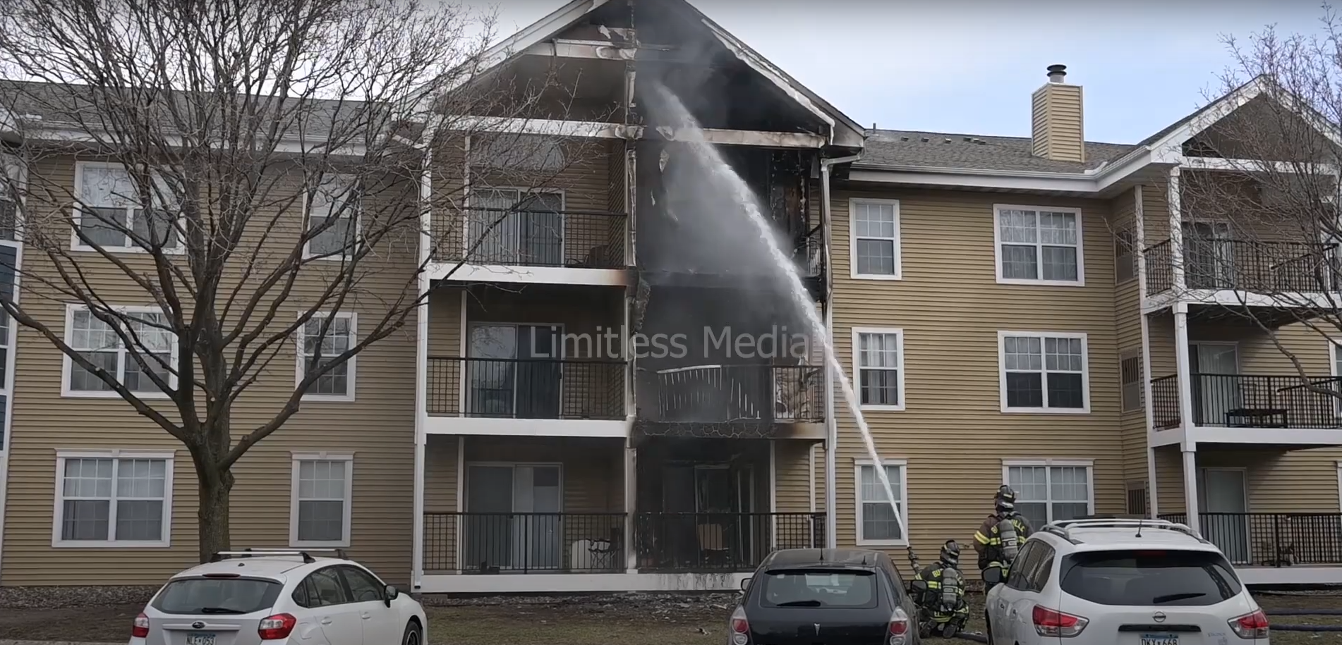 This call was quickly upgraded to a second-alarm fire at around 1:35 PM, and the Apple Valley Fire Department provided additional mutual aid. According to scanner traffic from Dakota County Dispatch, law enforcement reported that all three apartment building floors were on fire as of 1:36 PM. Law enforcement was working to evacuate people from the building. The first fire units arrived on the scene around 1:37 PM and confirmed the working structure fire. Fire crews chose an offensive attack on the fire with ladder one directed to hit the decks with water. Around 1:41 PM, the fire was upgraded to a third alarm with additional mutual aid from Apple Valley Fire Department and Savage Fire Department. The Burnsville Command Vehicle was also called to the scene at 1:48 PM.
