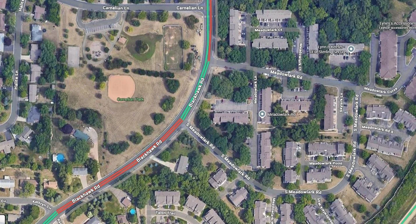 Rough location of the crash on Blackhawk Road between South Meadowlark Road and Meadowlark Road in Eagan, Minnesota.
