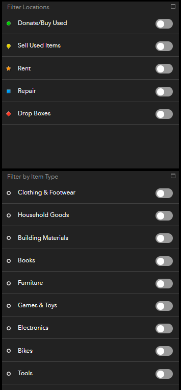 A look at the Dakota County Reduce and Reuse map. Use it to find local repair, rental, and donation options near you. Use filters to search for options ranging from clothing drop-off sites to shoe repair. For more, you can go to: https://www.co.dakota.mn.us/Environment/Residential/Reduce/Pages/default.aspx
