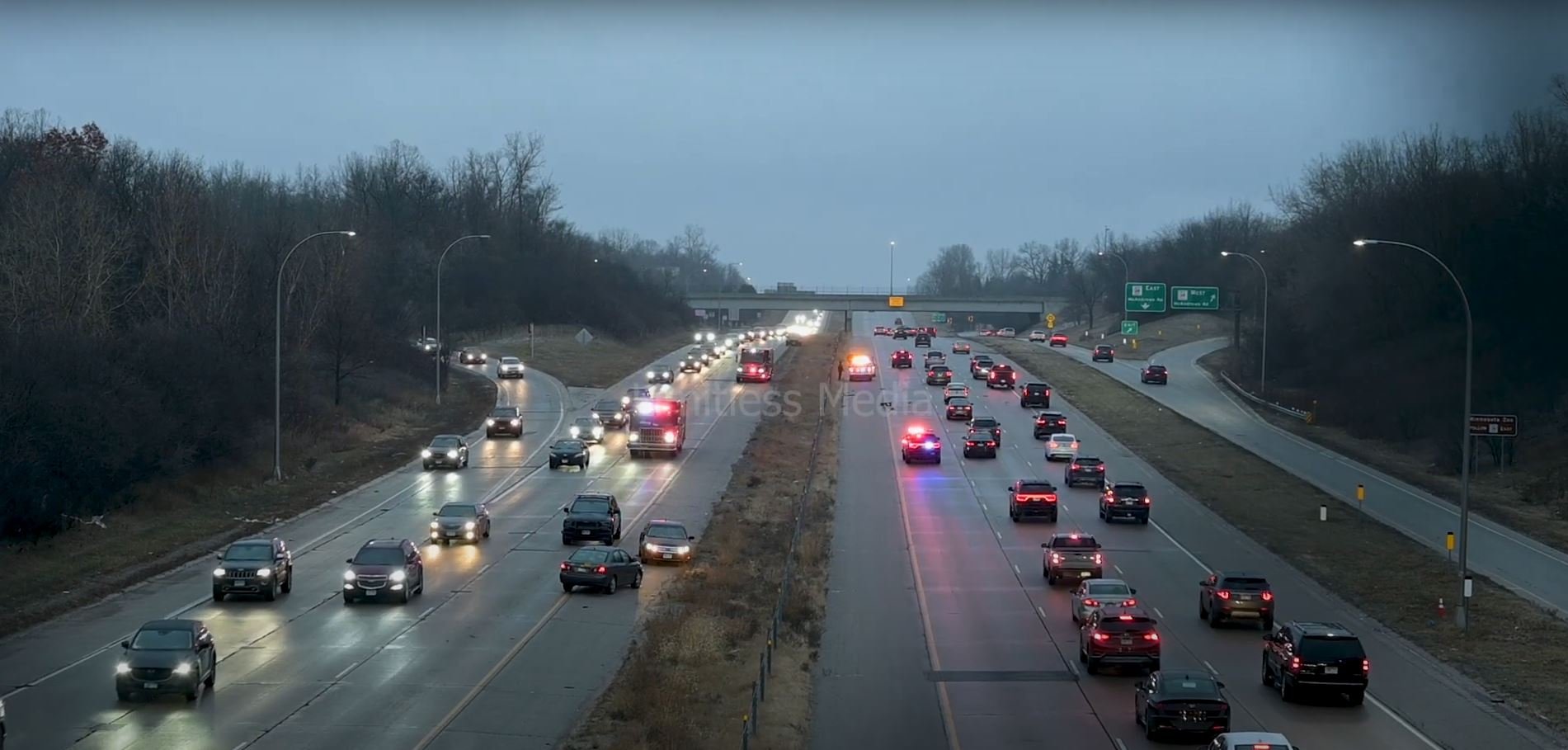 At around 4:38 PM, calls came into Dakota County Dispatch for a single-vehicle rollover along northbound I-35E just north of County Road 42. This would bring in the Burnsville Fire Department, arriving at the accident around 4:43 PM.
