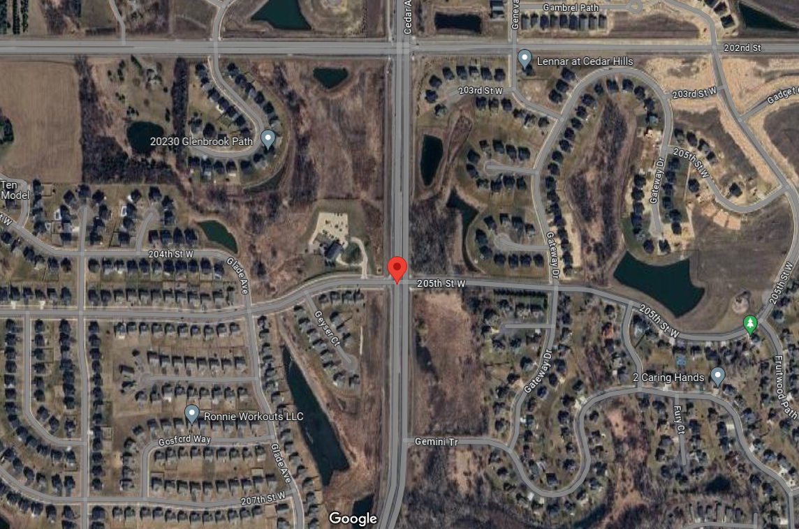 Rough location of crash scene in Lakeville, Minnesota.