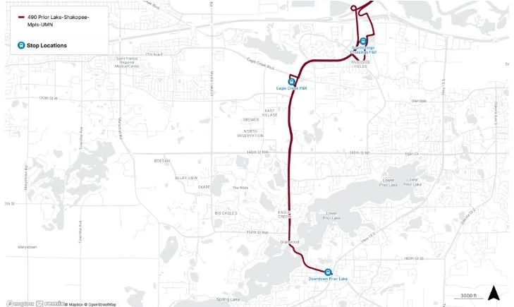 Route 490 will add a stop at Eagle Creek Park & Ride in Shakopee, creating another daily Park & Ride option and additional regional connections via Route 499.