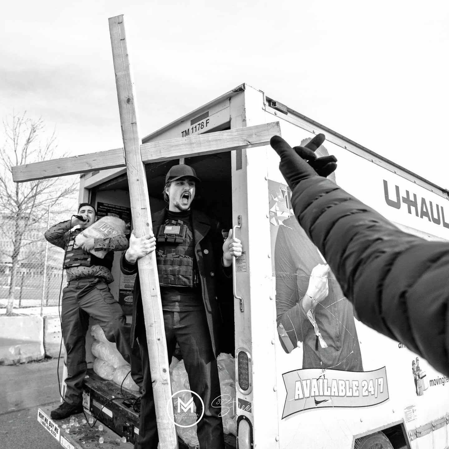 According to witness reports, the appearance involved Jake Lang and a small group who arrived in a rented U-Haul truck. Several individuals were seen standing in the back of the vehicle, with the door open, holding a wooden cross. Witness accounts indicate that pepper balls were fired and mace was sprayed toward people in the crowd during that brief appearance, with Jake Lang and crew departing only a few minutes later.