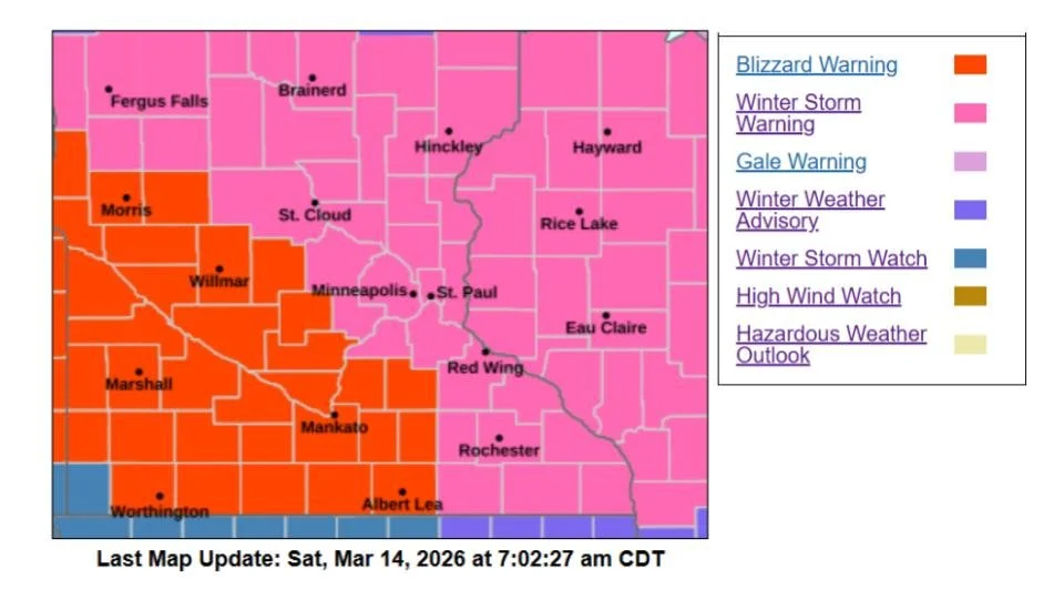UPDATE - MARCH 14, 2026, at 3 PM: Blizzard Warning Issued for Twin Cities Metro as Historic March Winter Storm Moves In
