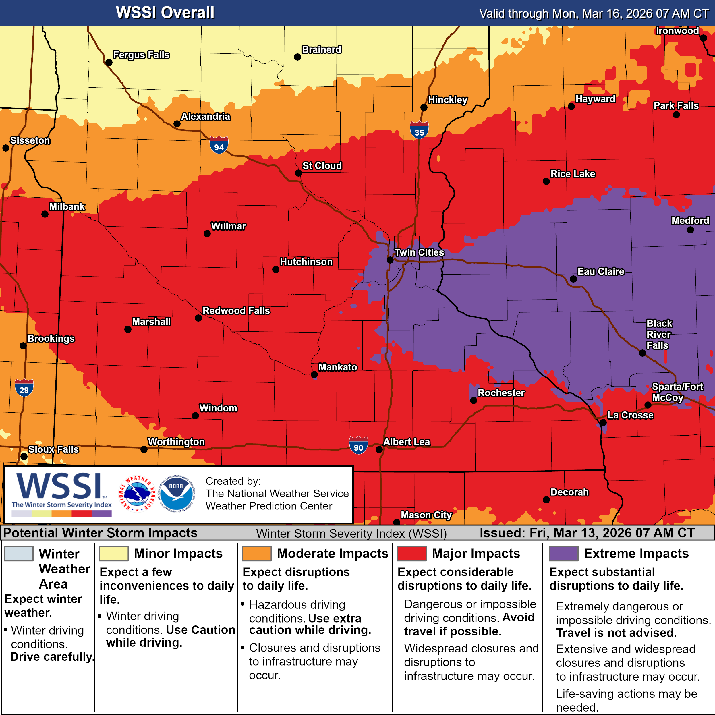 A major winter storm system will move across the Upper Midwest late Saturday into Sunday, bringing a large swath of heavy snowfall across Minnesota and Wisconsin.